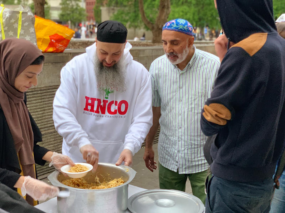 HNCO first started cooperating with Organic Soul, after a chance encounter during Ramadan , earlier this year. Organic Soul has been operating officially for around seven years, and sets up its free food stall in Manchester every Friday night, come rain or shine. During the Holy Month, this increases to a feed every night for 30 consecutive days; where the homeless and hungry can join the volunteers to break fast for an Iftar hot meal and drink, no questions asked.